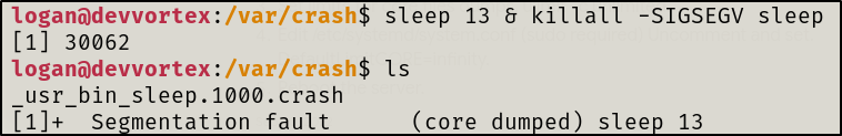 We must first generate a crash to have a crash file as there aren’t any in /var/crash/