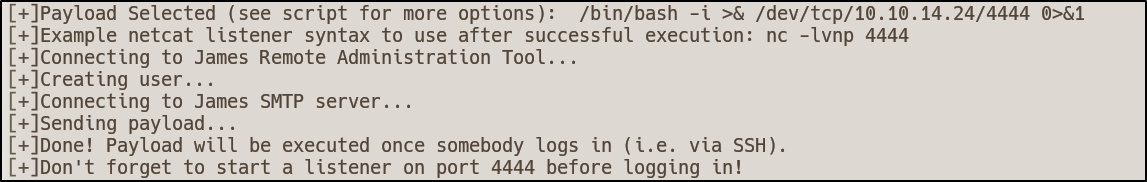 I then searched via Searchsploit for james 2.3.2 using searchsploit james 2.3.2